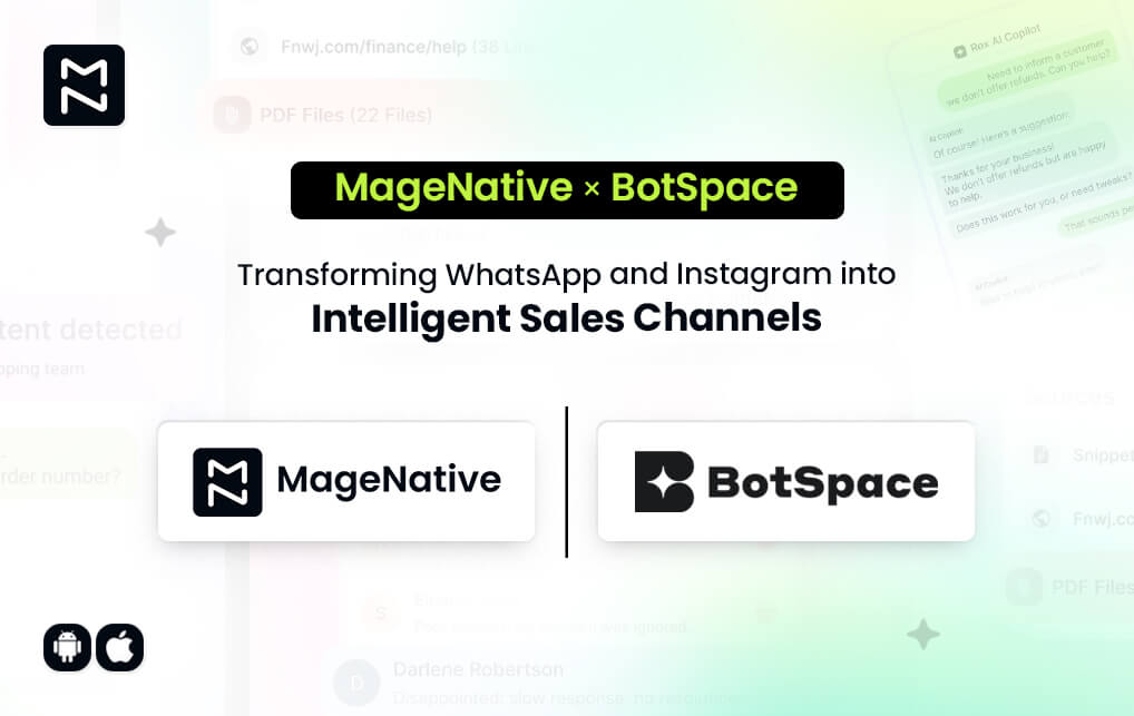 Recognizing this shift in customer expectations, MageNative has teamed up with BotSpace, a leading conversational AI platform that automates WhatsApp and Instagram conversations. Our collaboration empowers merchants to offer real-time support, send personalized offers, and re-engage shoppers automatically and 24/7.